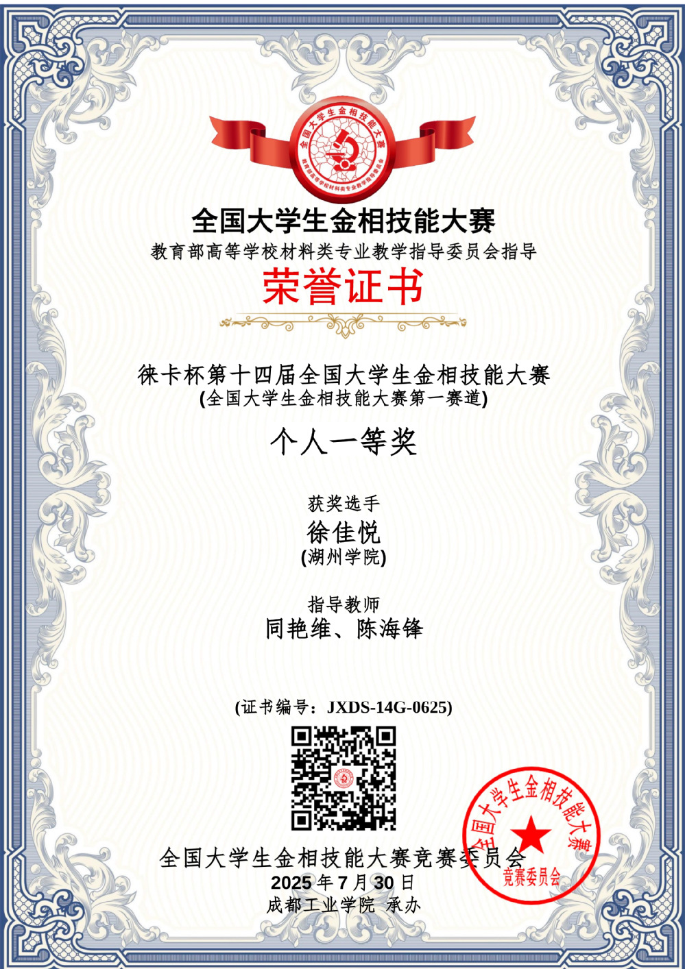 徕卡杯第十四届全国大学生金相技能大赛一等奖