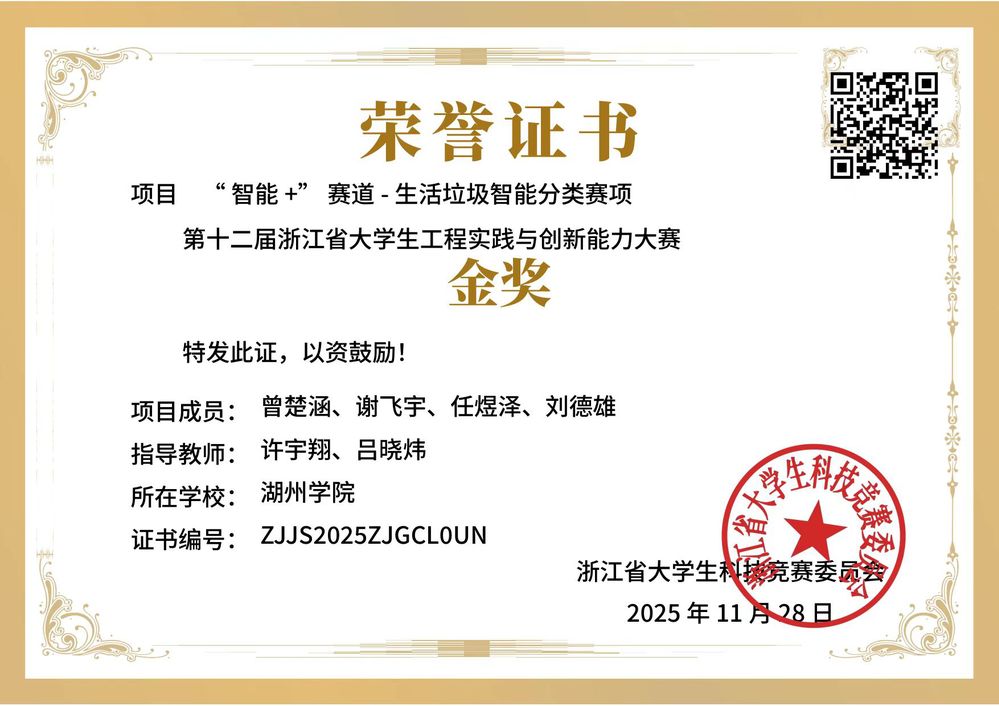 第十二届浙江省大学生工程实践与创新能力大赛金奖