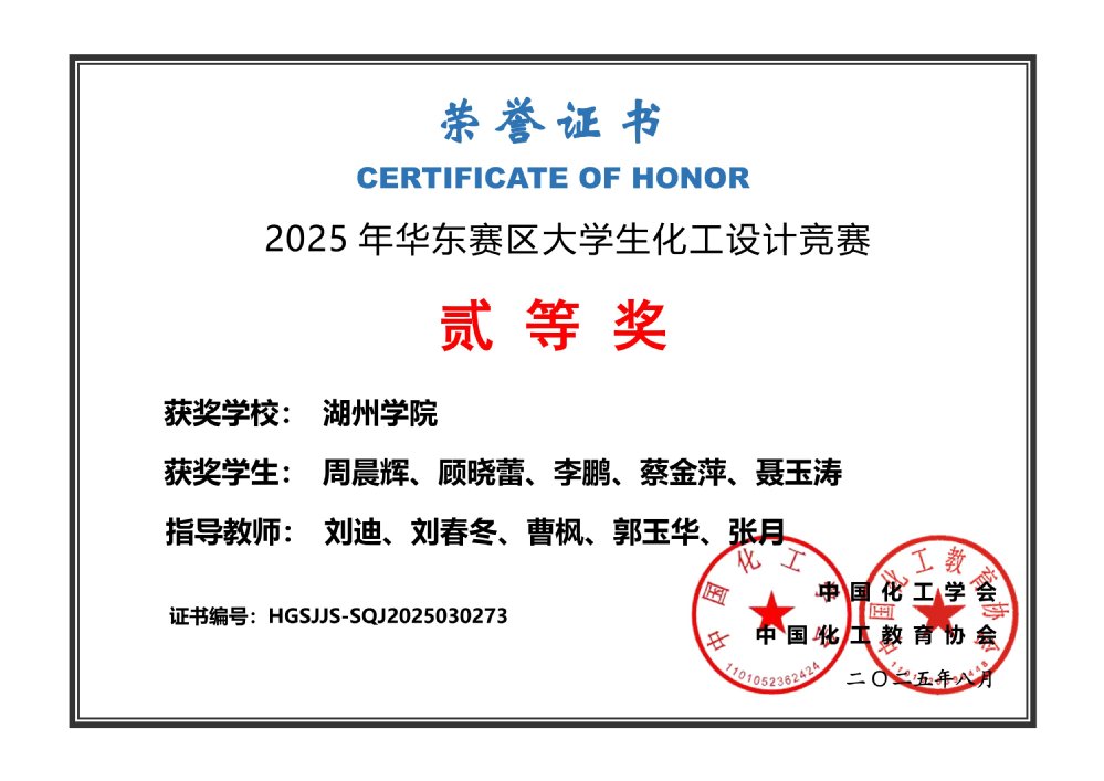 2025年华东赛区大学生化工设计竞赛团体二等奖